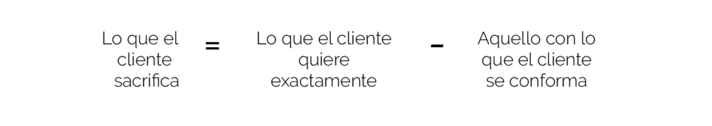 Cuando entendemos en qué consiste el sacrificio del cliente, entendemos claramente la diferencia entre lo que acepta y lo que verdaderamente necesita, aunque él mismo no lo sepa o no sepa como expresarlo.