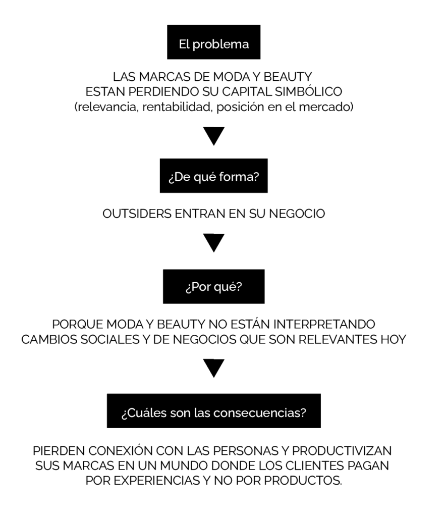 Moda & beauty están perdiendo capital simbólico porque pasan por alto muchas reglas que cambiaron y que son hoy indispensables para conectar con el consumidor y tener relevancia en el mercado. Las marcas necesitan replantearse su visión y realizar un trabajo profundo a través de una comprensión multidisciplinaria de lo que está sucediendo en el mundo y así decidir su postura y la estrategia de su negocio de cara al futuro. No es sencillo ni rápido, se trata de un trabajo integral por parte de los líderes de las empresas que abarca múltiples frentes. No es un ejercicio de marketing, no es de afuera hacia adentro. Es una transformación interna tan profunda y significativa que más tarde se verá reflejada en la comunicación. Es de adentro hacia afuera.