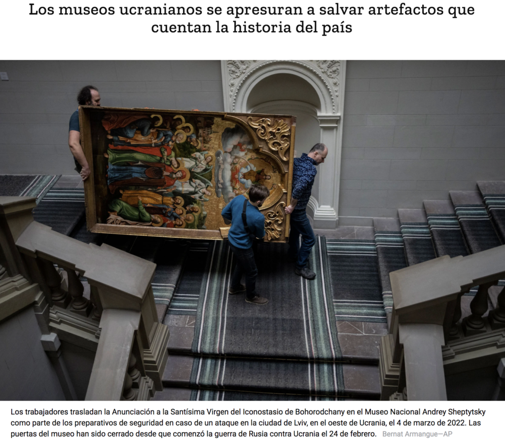 Dos semanas posteriores a la publicación de esta nota la revista Times realizó una nota muy interesante acerca de cómo están protegiendo su historia los ucranianos (museos, canciones, videos, fotos, investigaciones, esculturas) y lo que significa la pérdida de su historia para ellos. Podés leerla en este link.