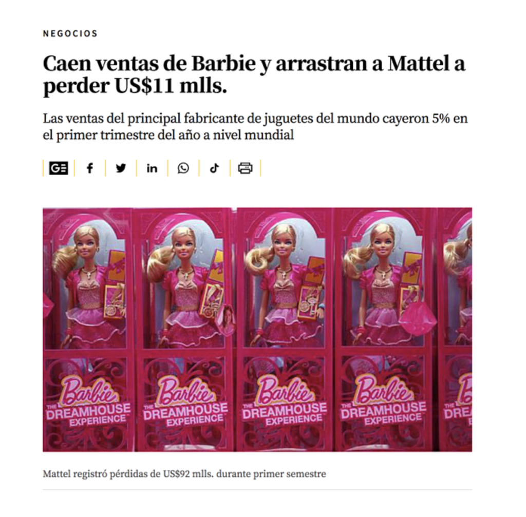 Las empresas no explotan, se derriten y eso es lo que le ocurría a Barbie desde hacía muchos años sin que sus directivos lo notaran. La muñeca ya no representaba los ideales ni los valores de la nueva generación. Los vientos sociales cambiaron rápidamente y eso dejó a la empresa de cara a una crisis económica y reputacional gravísima. Barbie estaba atravesando el peor momento de su historia y esto obligó a Mattel a replantear su estrategia de negocio y el rol del juguete en la sociedad.