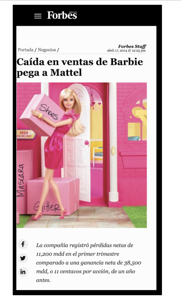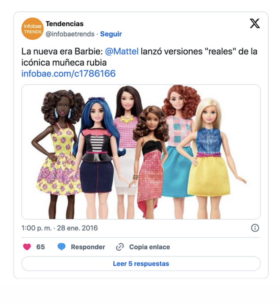 Hoy Barbie es una de las marcas más innovadoras y mejor posicionadas del mundo. Esto lo logró con disciplina estratégica, innovando, corriendo los límites, saliendo de la zona de confort y colocando al consumidor realmente en el centro de todas las decisiones. Una empresa que en el pasado estereotipó hasta el cansancio la figura femenina hoy logró cambiar su cultura interna y reinventarse completamente, entendió que su negocio no eran los juguetes lindos sino inspirar y ser referente de los valores de la nueva generación. Lo comprendió porque salió de su propia endogamia (algo que no muchas marcas logran hacer) y supo representar el zeitgeist de la época como ninguna otra en su rubro.